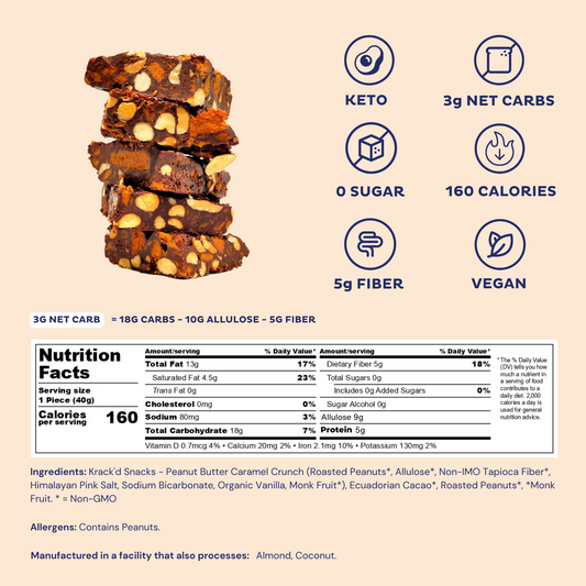 Krack’d snacks use real, functional ingredients like almond flour, peanut butter, plant-based protein, and allulose. These ingredients are carefully selected to support a keto lifestyle without artificial fillers or added sugars.