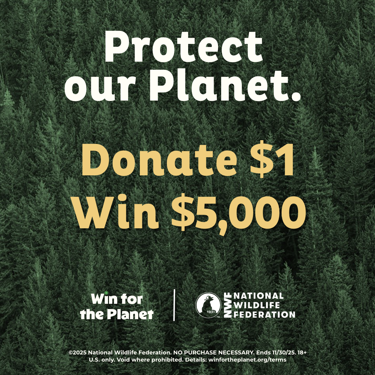 For just $1, you’ll support the National Wildlife Federation’s mission to protect wildlife and natural habitats—and get entered to win $5,000.
