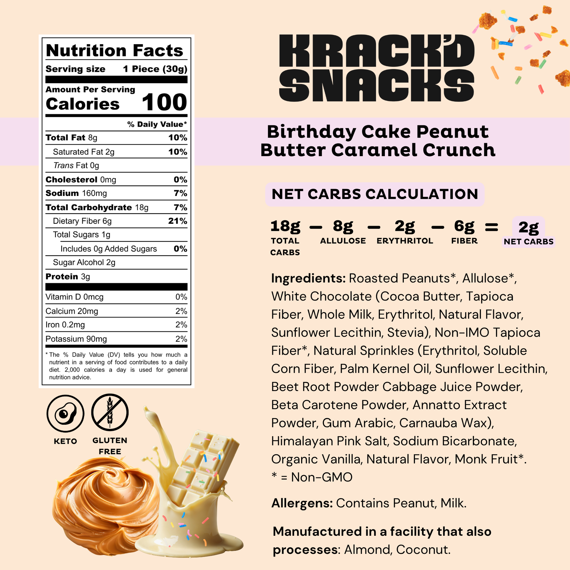Krack’d snacks use real, functional ingredients like almond flour, peanut butter, plant-based protein, and allulose. These ingredients are carefully selected to support a keto lifestyle without artificial fillers or added sugars.