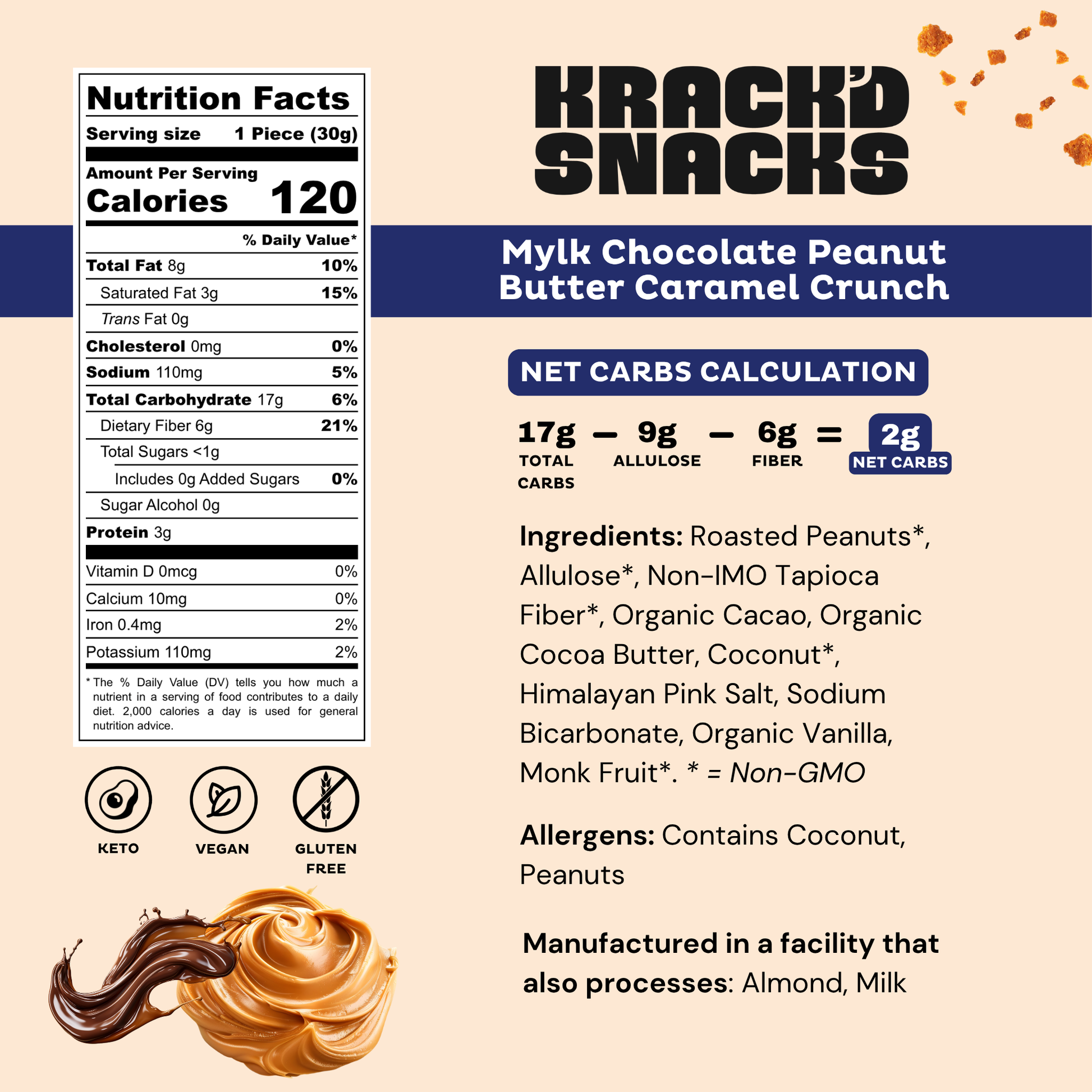 Milk Chocolate Peanut Butter Caramel Crunch, 2g Net Carbs
